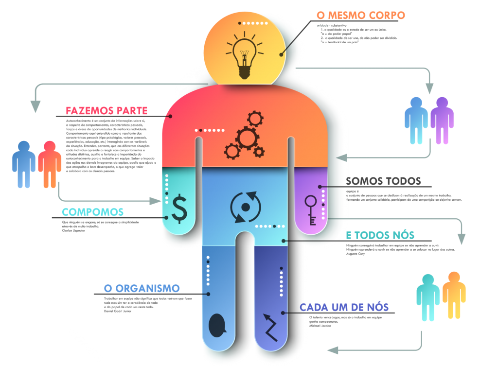 Ninguém é nada sozinho. E se queremos fazer algo grande, importante e que nos traga orgulho, precisamos fazer em equipe. Alcançar o sucesso com um esforço coletivo é muito mais prazeroso. Ao realizar o trabalho em equipe, ficamos mais motivados e comprometidos, afinal uns dependem dos outros, e todos são responsáveis tanto pelo sucesso quanto pelas falhas. Por isso, o trabalho em equipe deixa todos mais fortes.