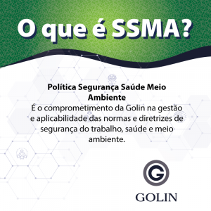 Política SSMA – Golin. – Vamos explicar o que significa essa sigla e sua importância. Fomos perguntar para nossa engenharia “o que significa SSMA? E a resposta do André Felipe, foi Política Segurança Saúde Meio Ambiente – Golin Significa que temos uma política integrada de segurança, saúde e meio ambiente. Diretrizes que devem ser seguidas por…