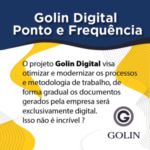 O projeto Golin Digital visa otimizar e modernizar os processos e metodologia de trabalho, de forma gradual os documentos gerados pela empresa será exclusivamente digital. Isso não é incrível ? Pensando nisso, informamos que a partir de 16/09/2024 as justificativas relacionadas ao Ponto e Frequência (atestado médicos, certidões, dentre outros) deverão serem enviados por foto…