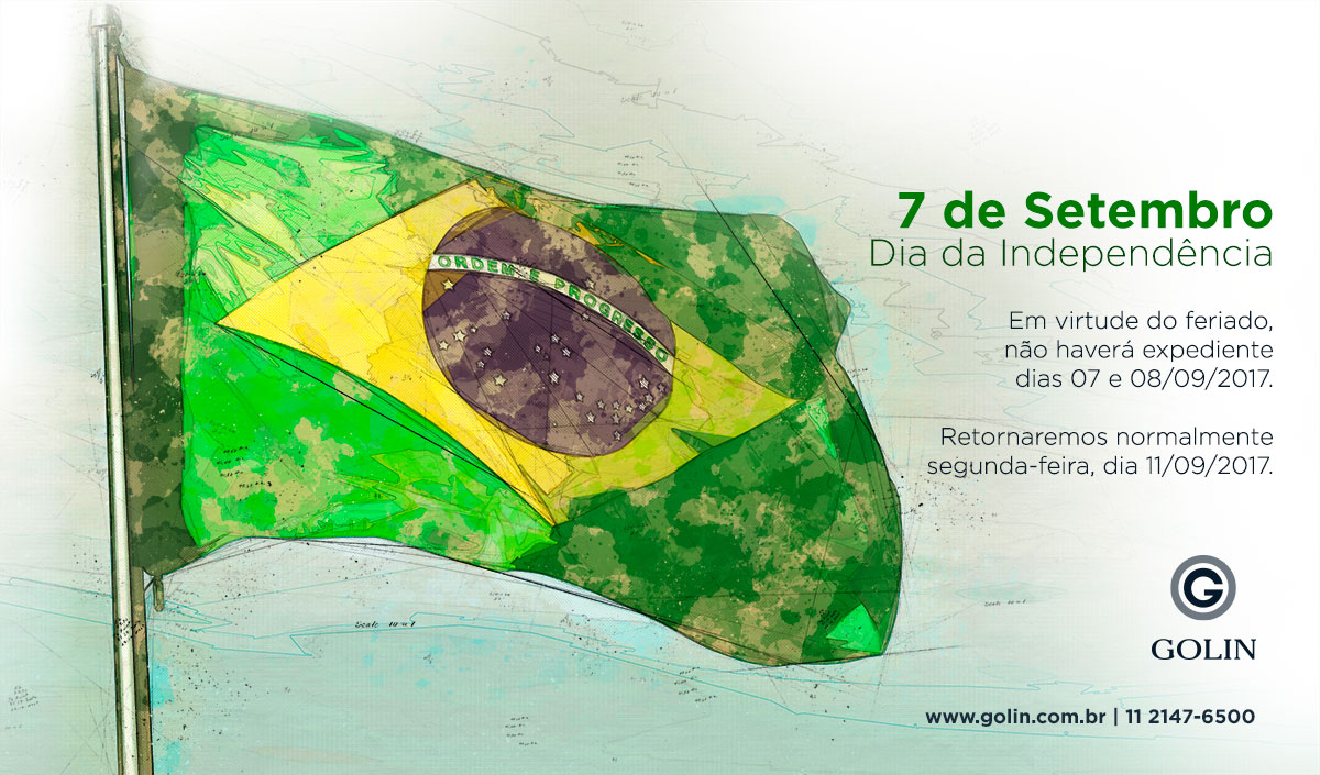 Em virtude do feriado, não haverá expediente na Metalúrgica Golin nos dias 07 e 08/09/2017. Retornaremos normalmente segunda-feira, dia 11/09/2017.