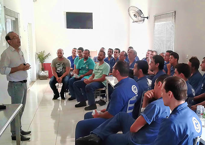 Colaboradores de São João da Boa Vista, durante SIPAT 2017 na unidade. O pessoal estava animado, sério quando necessário, atento. Mas na hora das homenagens e sorteio, alegria e muita brincadeira. O homenageado durante a o evento, foi o Rafael Gussoni, diretor da unidade, que fez 10 anos de Golin. Parabéns! Segurança é coisa séria…